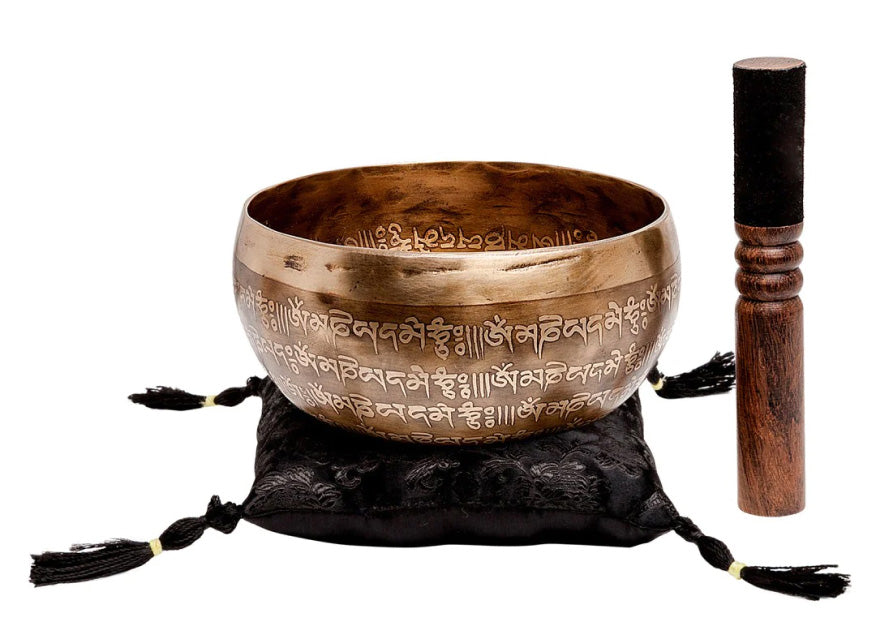 The Purity Bowl: 6 inch | Handmade Bronze Singing Bowl From Nepal "Om Mani Padme Hum" Design