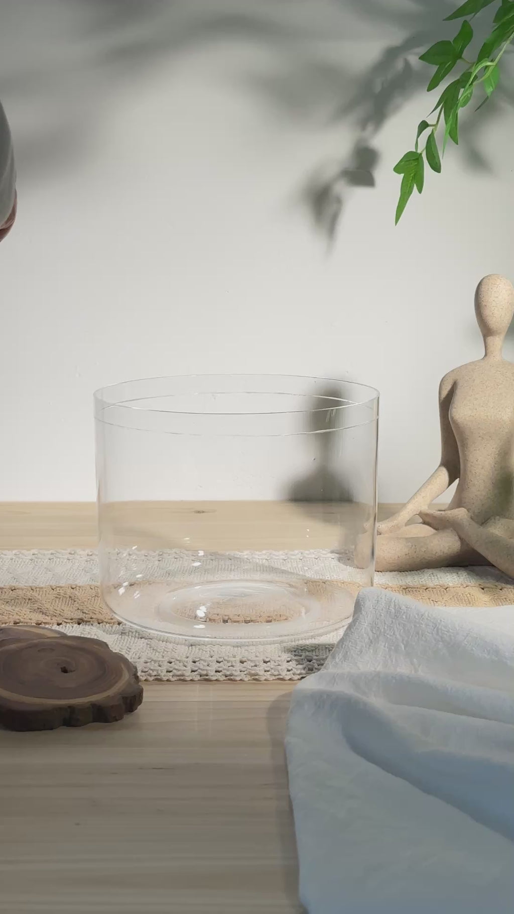 The Prism Series perfect pitch, A3 quartz crystal singing bowl at 7.25 inches in diameter -- 440hz tuning is used to measure.