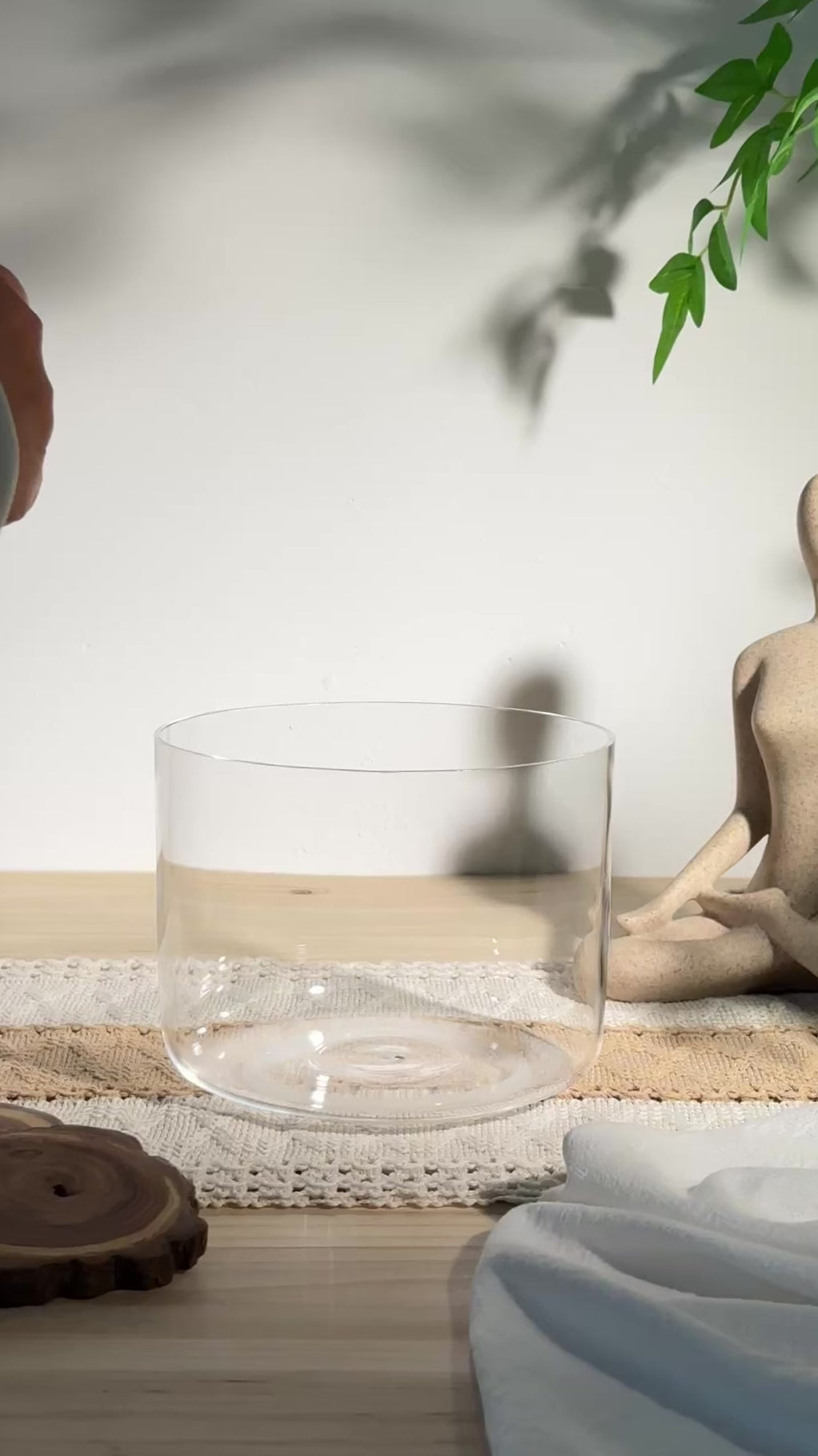 The Prism Series perfect pitch, D#4 quartz crystal singing bowl at 6.5 inches in diameter -- 440hz tuning is used to measure.