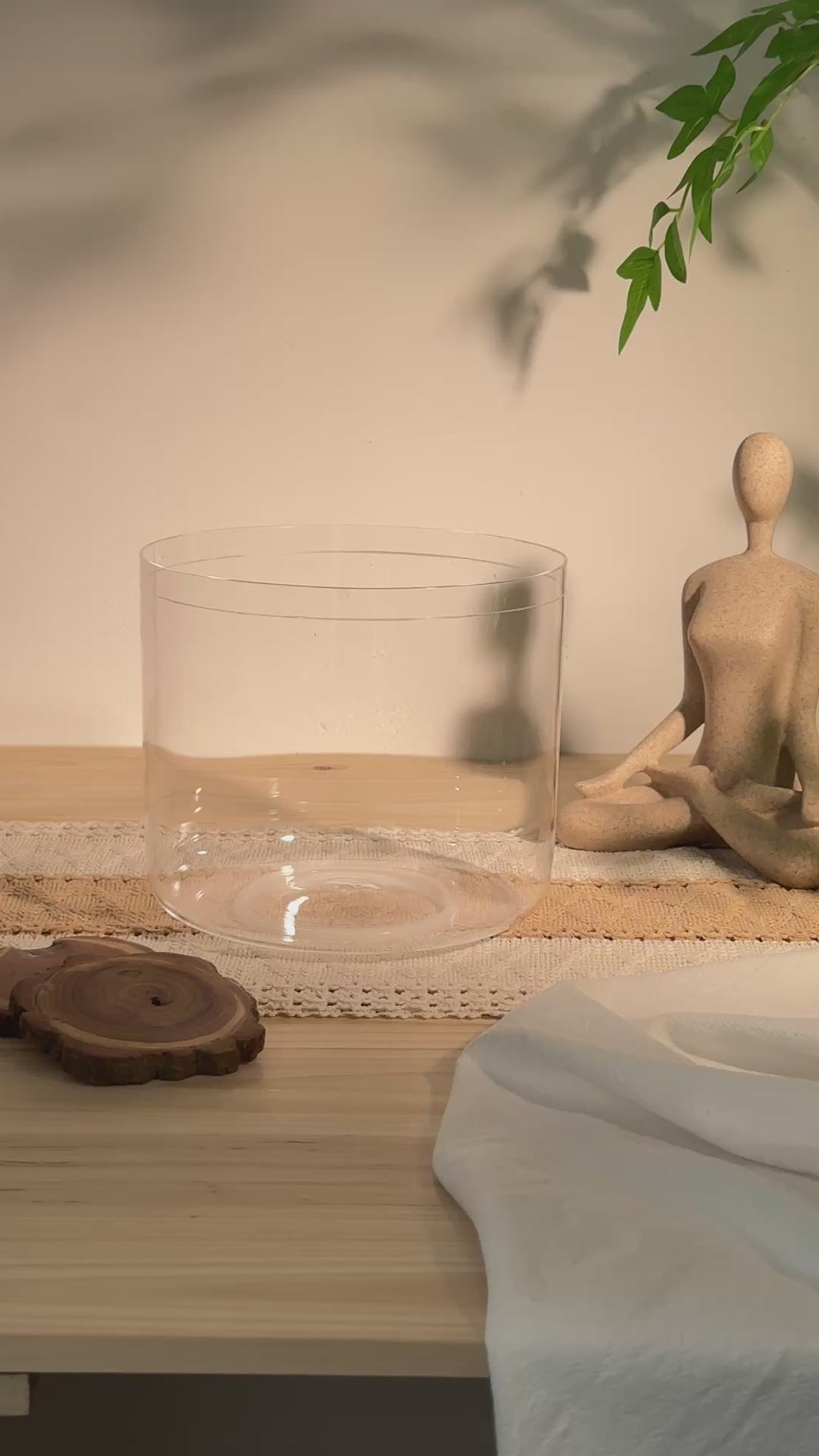 The Prism Series perfect pitch, F3 quartz crystal singing bowl at 8 inches in diameter -- 440hz tuning is used to measure.