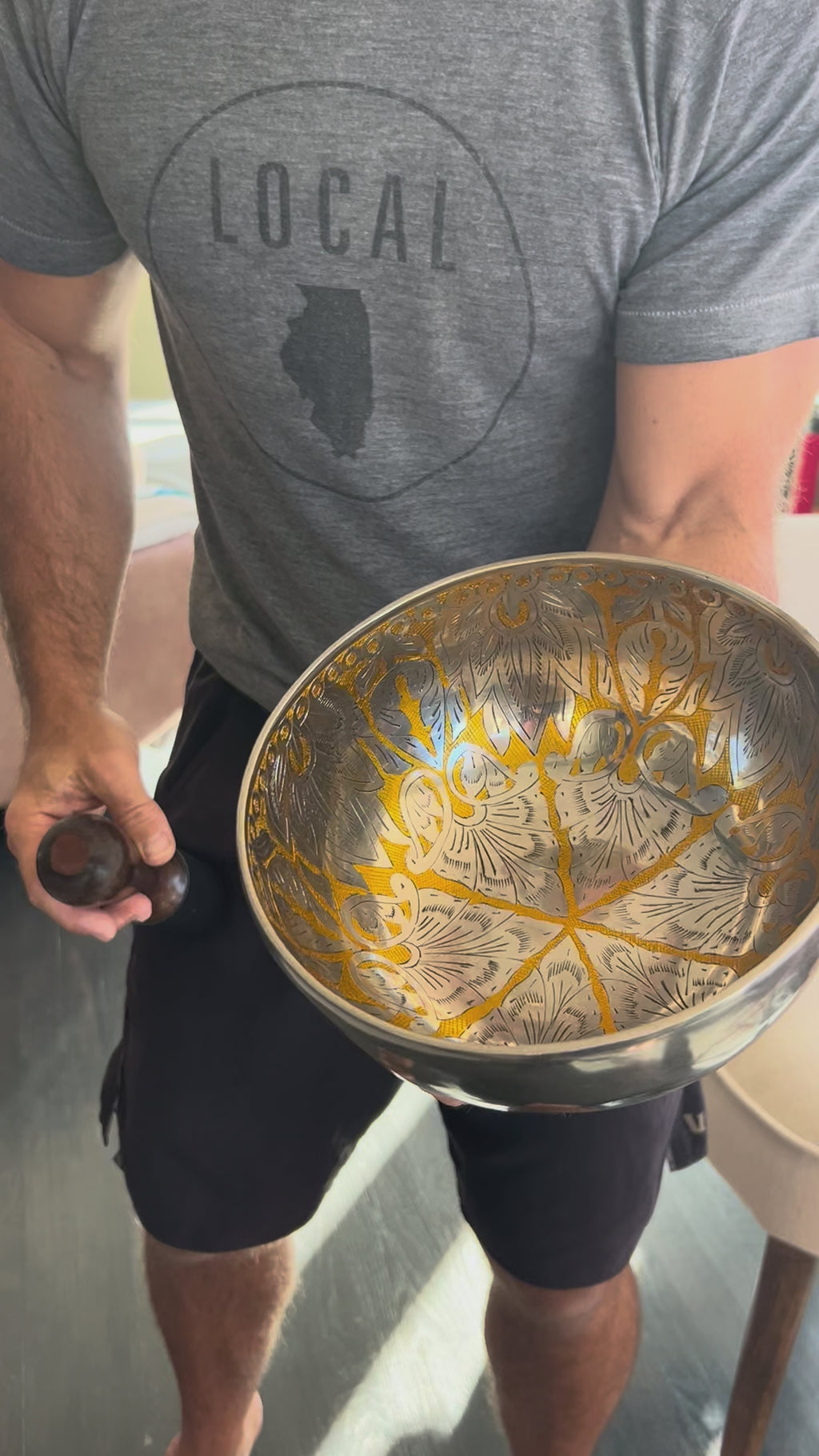 7.5 Inch Silver and Gold Bowl: Limited Run Handmade Bronze Singing Bowl