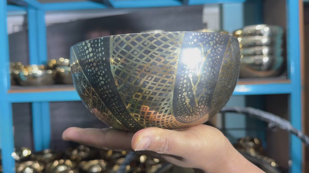 Each singing bowl that we make is 100% unique and made by the loving hands of one of our craftsmen. Due to the nature of this handmade process, all sizes and weights are approximate and the sound captured on our website may be slightly different than your own special bowl.