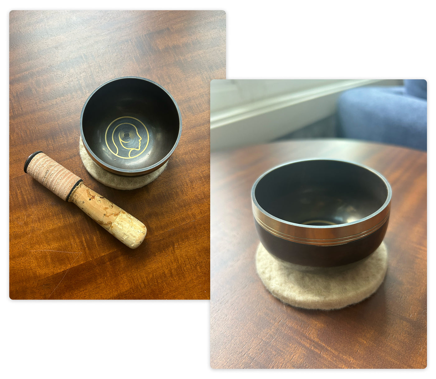 Even the best bowls can end up sitting without being enjoyed. We were not taught in junior high music class how to benefit from the sounds of a handmade singing bowl!